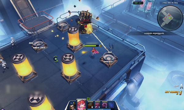 아레나 출격장치를 클릭해 입장할 수 있으며 3 대 3으로 매칭되는 전투 훈련실은 제한시간 5분 내 상대를 최대한 많이 처치해야 승리하는 데스매치 방식이며 4 대 4로 매칭되는 점령전은 맵 곳곳에 있는 거점(점령 포인트)을 점령하고 이를 유지하면 점수가 쌓이며 가장 먼저 300점을 달성한 팀이 승리하는 깃발뺏기 방식이다.