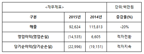 네시삼십삼분(대표 소태환, 장원상, 이하 4:33)은 지난해 결산 결과 매출 926억을 기록하고 영업손실 145억을 기록했다고 30일 공시했다. 이는 전년 대비 20% 감소한 매출액이며 영업이익은 적자전환으로 나타났다.