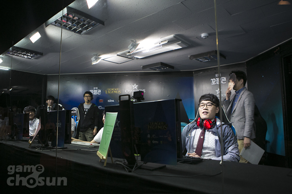 이현우 해설위원이 1일 열린 CJ와 KT 롤챔스 경기 시작 전 선수 시절 소속팀인 CJ 부스를 찾았다.