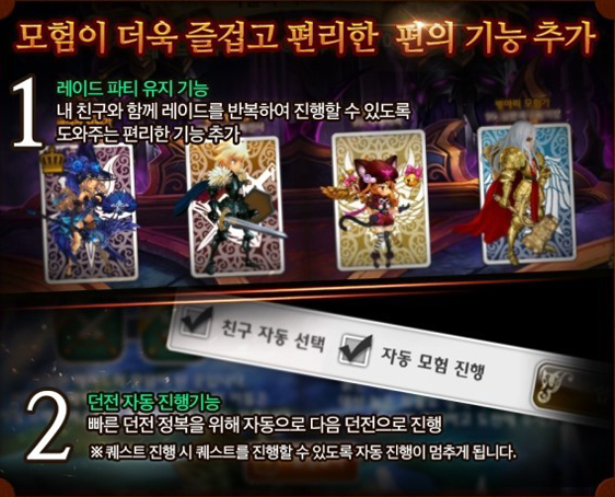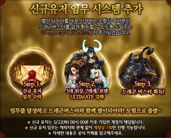 그밖에 신규 유저를 위한 임무 시스템을 추가해 드래곤버스터를 초반부터 쉽게 획득할 수 있게 됐으며 월드 보스 리뉴얼과 레이드 파티 유지 기능, 게임 가이드 개편 등 유저 편의 기능도 업그레이드됐다.