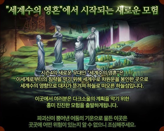 더불어 새로운 월드인 ‘세계수의 영혼’과 신규 지역 ‘비밀의 습지’가 오픈되고 또한 최종 병기 드래곤버스터와 파괴신 다크소울의 숨겨진 힘과 능력을 추가 획득할 수 있는 ‘초월 강화 시스템’도 새롭게 등장한다.