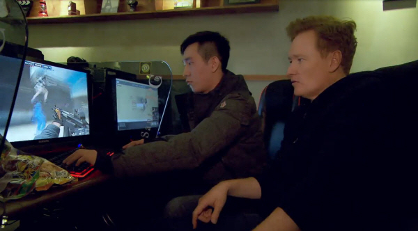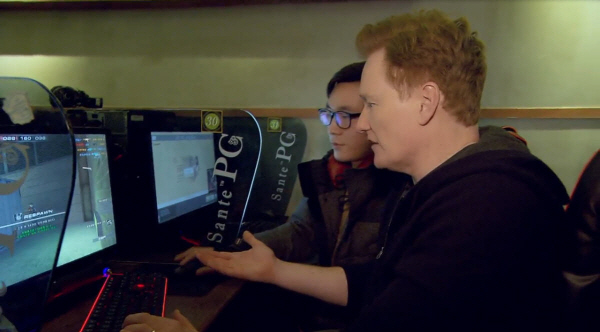 11일 팀코코(teamcoco.com/korea) 홈페이지에 공개된 '한국 탐방기 PC방편' 영상에서 코난오브라이언은 직접 PC방에 들려 '서든어택' '스타크래프트' 등 국내 인기 게임을 직접 플레이하는 시간을 가졌다.