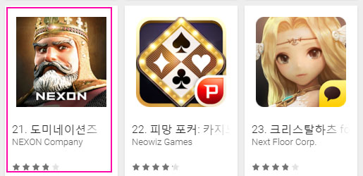 ▲ 2016년 4월 21일 구글플레이 게임 부문 최고 매출 순위 갈무리