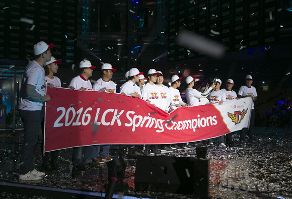 ▲ 롤챔스 스프링 2016 우승팀 SKT T1