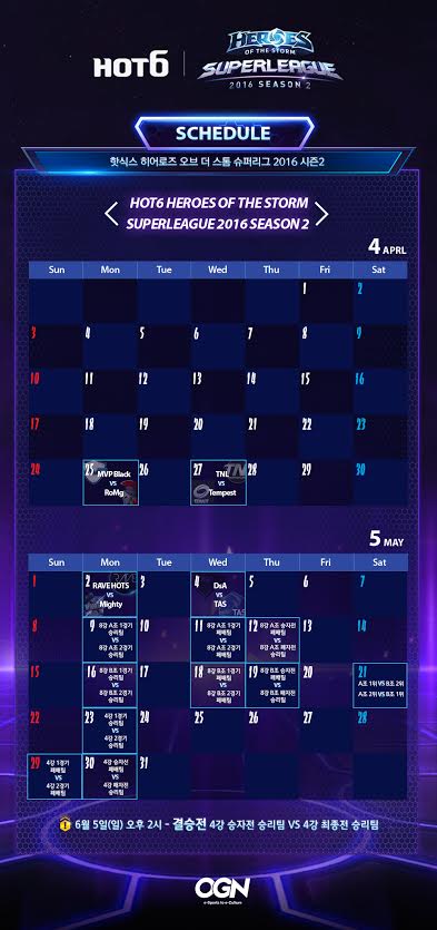 '핫식스 히어로즈 슈퍼리즈 2016 시즌2'의 경기 일정은 다음과 같다.