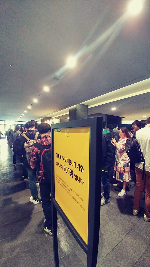 한편 NDC16이 열리는 넥슨 판교 사옥에는 오전 9시부터 강연을 듣기 위한 관람객들이 몰렸는데 특히 선착순으로 아트북을 무료 배포해 대기열이 발생하기도 했다.