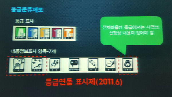 그는 "간혹 청불을 요청하는 게임회사들이 있다"면서 "하지만 셧다운제 때문에 원하는대로 상위등급을 받을 순 없다"고 말했다. 대신 게임 내 쌍스러운 욕설을 추가하면 쉽게 청불을 받을 수 있다고 비법을 공개했다.