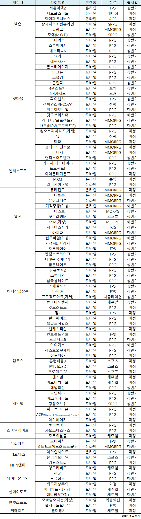 ※ 각 게임은 기자간담회 및 실적발표를 통해 공개된 주요 게임사 작품이며 개발 상황에 따라 연기될 수도 있음