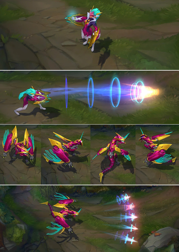'슈퍼갤럭시 킨드레드'는 네온싸인 바이 스킨과 비슷한 외형으로 만들어졌으며 스킬 사용시 광원 효과를 자랑한다. 또 '슈퍼갤럭시 쉬바나'는 분홍색과 청록색이 합쳐진 용 로봇으로 E스킬 사용시 광선을 내뿜게 디자인됐다.