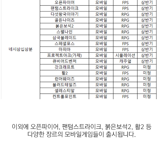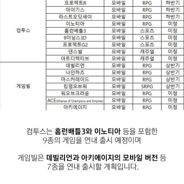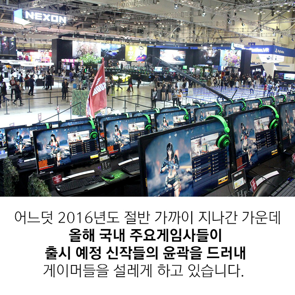 연초부터 많은 온라인 및 모바일게임들이 출시되고 있다. 어느덧 5월이 되어 벌써 올해가 절반 가까이 지나갔지만 게임사들의 신작 러시는 끊이지 않는 양상이다. 게이머들을 설레게 할 만한 약 95종의 신작들이 연내 출시를 위한 담금질을 계속하고 있다. 이에 <게임조선>에서는 남은 2016년 출시 예정 게임들을 21장의 카드뉴스로 정리해 봤다.