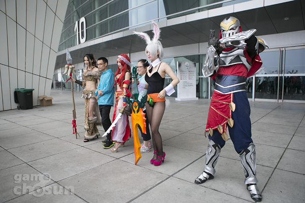 또 입구에서는 롤 챔피언인 리븐과 카타리나, 제드, 니달리로 분한 팬들이 경기장을 찾은 팬들을 반기고 있다.