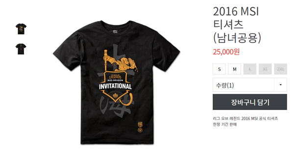 ▲ 한국에서도 판매되고 있는 2016 MSI 공식 티셔츠