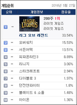 특히 오버워치 출시 이후 기존 인기 게임의 점유율에서도 변화가 있는 만큼 리그오브레전드-오버워치-서든어택의 삼파전의 흐름도 주목된다.