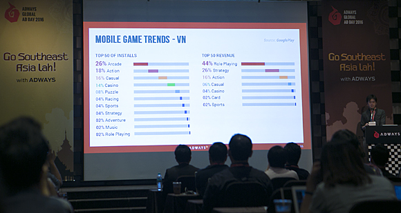 베트남 구글플레이 스토어에서는 국내와 같이 RPG(역할수행게임) 장르의 인기가 44%로 가장 높으며 주로 무술이나 삼국지, 판타지 소재의 게임들이 흥행하고 있다. 모바일게임을 주로 즐기는 연령대는 16세부터 24세 이용자로 학생들의 사용이 가장 높은 편이다. 전반적으로 국내와 비슷하기 때문에 괜찮은 게임만 가지고 있다면 도전해 볼만 하다는 것.