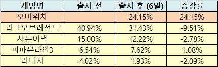 업계 관계자는 “PC 온라인시장에서 오버워치의 흥행 여파로 기존 게임들은 각종 이벤트와 업데이트, 프로모션 등을 시작했으며 이런 분위기가 곧 온라인게임 생태계에 긍정적인 효과를 가져올 것으로 기대된다”고 말했다.