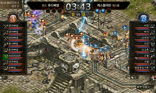 8강전 1경기는 켈로스 서버의 어레인전투요와 아인하사드 서버의 얄밉지형맹의 대결로 어레인전투요가 세트 스코어 3 대 0을 기록하며 압승을 거두었다.