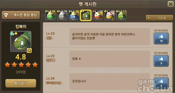 특히 수집형 RPG의 핵심인 캐릭터 육성 밸런스가 뛰어나 초보와 무과금 유저가 쉽게 게임에 몰입할 수 있는 장점을 있는데 이 시스템을 활용한 ‘킹북이’라는 펫(캐릭터)이 현재 유저들 사이에서 큰 인기를 끌고 있다.