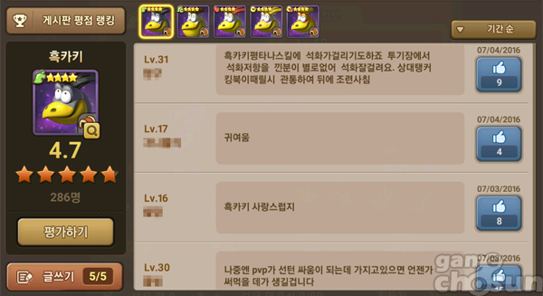 ▲ 흑카키에 대한 스톤에이지 유저들의 호평글