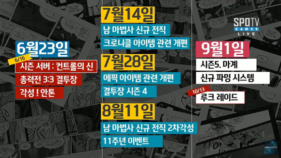 이어 7월과 8월에는 남 마법사 신규 전직 3종과 2차각성을 추가하고 크로니클 아이템 및 에픽 아이템 개편한다. 또 결투장 전용 85레벨 캐릭터 지급, ‘시즈키의 도장’ 등을 포함한 ‘결투장 시즌4’ 콘텐츠를 선보인다.