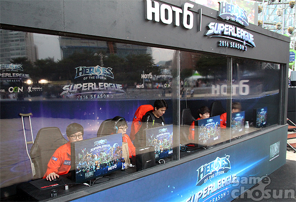 블리자드의 온라인 팀전게임 '히어로즈오브더스톰(이하 히어로즈)'으로 진행되는 '핫식스 히어로즈오브더스톰 슈퍼리그2016(이하 히어로즈 슈퍼리그)'의 3번째 시즌이 30일 부산시 해운대 백사장에서 개막했다.