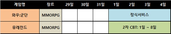 매주 PC 온라인게임 테스트 혹은 정식서비스 등의 소식을 전하는 <게임조선>의 신작 일정 코너.