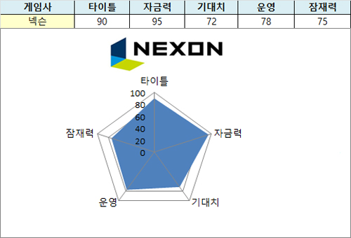 넥슨은 자타가 공인하는 명실상부 국내 최대 게임사다. 보유한 게임과 규모, 매출 등에서 가장 좋은 성과를 올리고 있으며 막강한 자금력을 바탕으로 대작 게임을 많이 만들어낼 수 있는 역량을 가졌다.