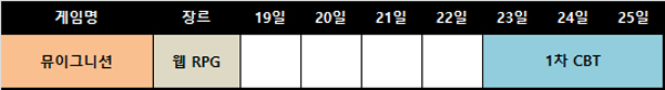 매주 PC 온라인게임 테스트 혹은 정식서비스 등의 소식을 전하는 <게임조선>의 신작 일정 코너. 9월 3주 PC온라인게임 시장에서는 웹젠(대표 김태영)의 웹 RPG ‘뮤이그니션’이 23일 첫 비공개테스트(CBT)를 진행한다.