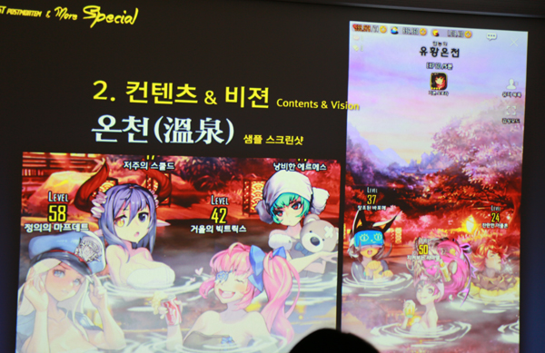 이날 '온천'과 '총선거' 등 CBT 때 볼 수 없었던 새로운 콘텐츠가 깜짝 공개됐다. '온천'은 경험치와 오닉스 등 게임 내 주요 재화를 획득할 수 있는 시스템이다. 특히 목욕수건을 획득하면 캐릭터가 온천 비주얼로 바뀌어 눈길을 끈다.