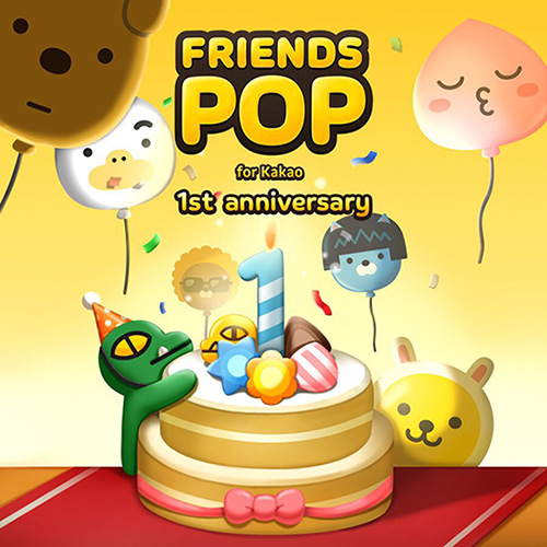 '프렌즈팝'은 ‘카카오프렌즈’ IP를 활용해 제작된 퍼즐게임으로, 작년 8월 25일 출시돼 1주년이 지난 현재까지도 구글-애플 양대 마켓에서 매출 순위 10위권을 유지하며 롱런하고 있다. RPG가 주를 이루는 모바일 앱마켓에서 매출 TOP 10을 꾸준히 유지하는 퍼즐 게임이다. 평균 월 1~2회에 걸친 업데이트와 스테이지(지역) 추가 및 풍성한 이벤트 등 새로운 콘텐츠를 꾸준히 제공하는 것이 인기 유지 비결로 꼽힌다.