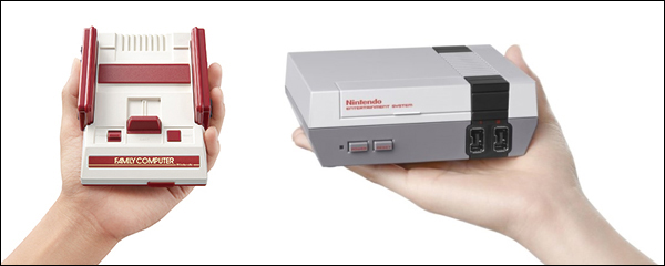▲ 미니 사이즈로 재출시되는 닌텐도 고전 게임기 패미컴(좌)과 NES(우)