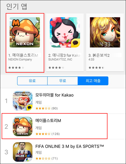 ▲ 구글 인기 앱 1위와 애플 매출 2위를 기록 중인 메이플스토리M