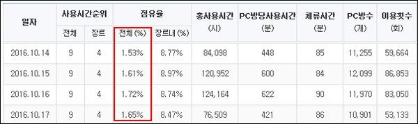 ▲ 메이플스토리M 출시 후 점유율 상승세를 보인 온라인 메이플스토리