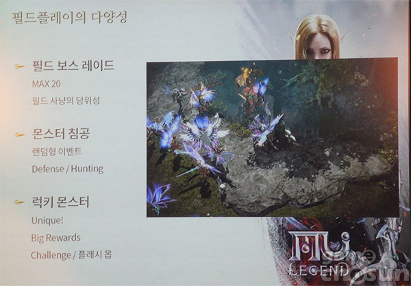 조준범 사업 팀장 "지난 두 번의 CBT 피드백을 통해 뮤레전드의 방향성을 확실하게 잡을 수 있었다"며 "필드 콘텐츠의 경우 지나치게 퀘스트 위주의 진행이 이어진다는 말이 많았는데 이를 보완하기 위해 필드보스와 침공 등의 콘텐츠를 추가해 이미 진행한 지역도 다시 돌아와 색다르게 즐길 수 있도록 개발 중이다"고 말했다.