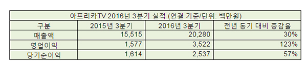 최근 유명 BJ들과 마찰로 논란을 빚었던 아프리카티비(TV)가 3분기 실적을 발표했다.