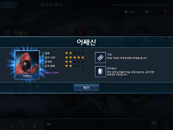 스킨 시스템을 탑재해 한 캐릭터로 여러 분위기를 낼 수 있다.