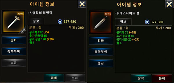 또 '장검'과 '일본도', '레이피어', '싸울아비 장검' 등 리니지 아이템과 동일한 이름을 가진 아이템을 획득할 수 있는데 특히 '커츠의 검'과 '데스나이트의 불검', '진명황의 집행검' 등 리니지의 희귀 아이템들은 '커터의 검', '데스나이트의 검', '명황의 집행검' 등 글자 하나만 고쳐진 채로 등장해 표절 의혹은 더욱 커지고 있다.