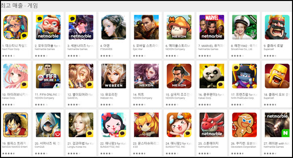 신작 6인방이 구글 매출 탑30에 안착했다.