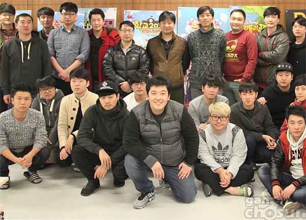 ▲ 중소게임사의 저력을 보여주고 있는 조영종 대표(중앙)와 라쿤소프트