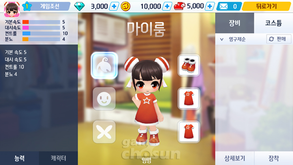 6개 부위에 장비를 장착해 외형과 능력치를 변경할 수 있다.