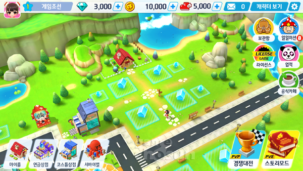 게임에 들어서면 아기자기한 로비를 경험할 수 있다.