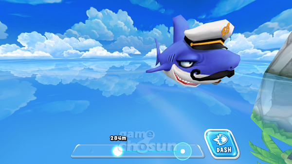 서버이벌모드는 밀려오는 파도와 상어를 피해 달려야 한다.