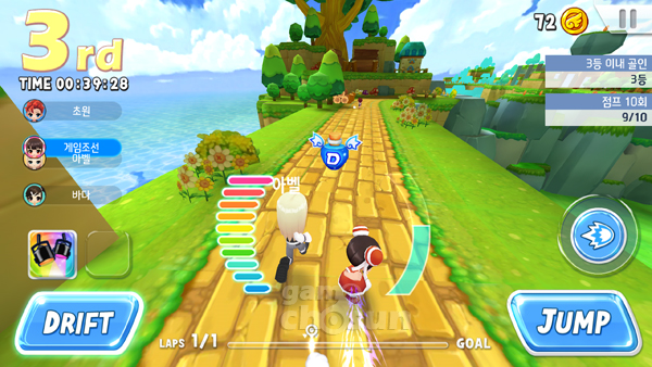 드리프트는 카트라이더처럼 게이지를 모았다가 빠르게 달리는 기능이다.