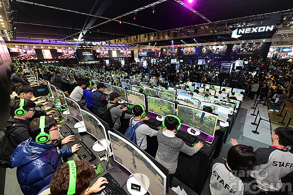 3일차에 들어선 국제게임전시회 '지스타2016' 넥슨 부스로 관람객이 몰리고 있다.
