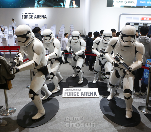 넷마블은 부산 벡스코 현장 곳곳에 다스베이더-스톰트루퍼 코스프레 부대를 행진시켜 '포스아레나'의 존재감을 남다르게 연출 하기도 했다.