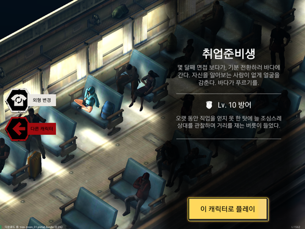 게임을 시작하면 플레이할 직업을 선택할 수 있다. 취업 준비생과 농부, 주부 등 8가지 직업의 캐릭터가 마련됐으며, 머리와 피부, 의상 등 다양한 캐릭터 커스터마이징을 제공한다.