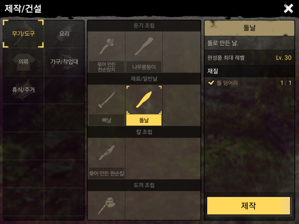 예를 들어 망치를 제작할 경우, 나뭇가지와 갈대, 돌멩이를 엮어 제작할 수도 있지만 고깃덩어리와 통나무, 이어폰을 조합해 제작할 수도 있다. 물건의 제작하는 과정에서 개척의 재미를 느낄 수 있는 셈이다.