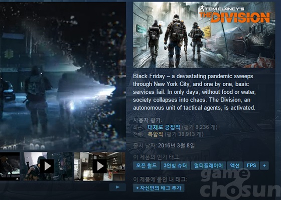 2013년 세계 3대 게임쇼 중 하나인 E3 2013에서 첫 공개된 이후 전세계 게이머로부터 꾸준한 관심을 받아온 유비소프트의 오픈월드형 TPS MMORPG 디비전이 2016년 3월 8일 출사표를 던졌다.