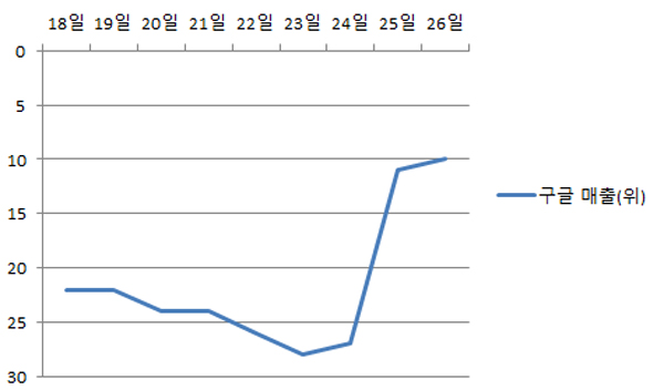 ▲ 크리스마스 이벤트 후 급격한 상승세를 보인 서머너즈워 구글플레이 한국 최고 매출 순위