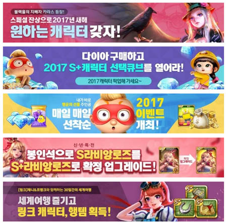 모두의마블은 스페셜 잔상으로 S+ 캐릭터를 선택할 수 있는 이벤트와 선착순 및 다이아몬드 에빈트를 진행 중이고 세븐나이츠는 지난해 말 신규 다크나이츠 영웅 브란즈&브란셀을 추가하고 무한의 탑 확장 등을 단행해고 관련해 기념 이벤트를 진행 중이다.