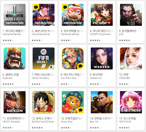 이같은 신작의 상승세는 '리니지2:레볼루션' '모두의마블' '세븐나이츠' '리니지레드나이츠'가 최상위권을 점령한 시장의 판도에는 영향을 미치지 못할 것이라는 전문가들의 평가다.
